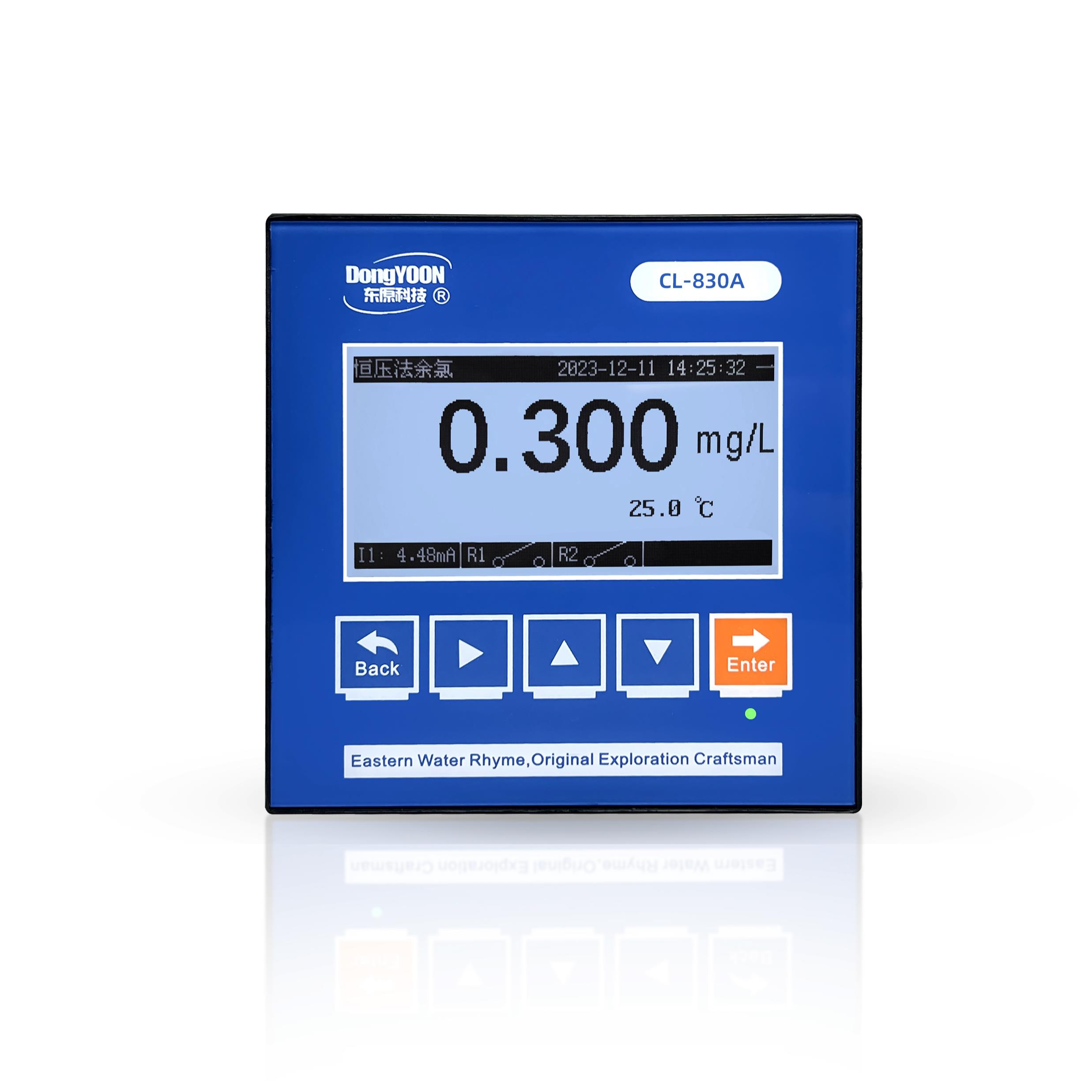 CL-830A壁挂式在(zài)線餘氯儀 采(cǎi)用恒電壓原(yuán)理設計。